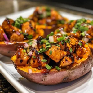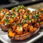 BBQ Chicken Stuffed Sweet Potatoes are a delicious and healthy meal option, combining tender sweet potatoes with flavorful BBQ chicken for a satisfying dish.