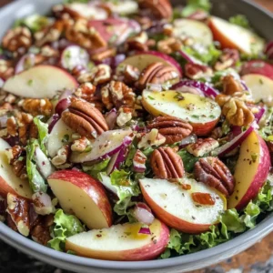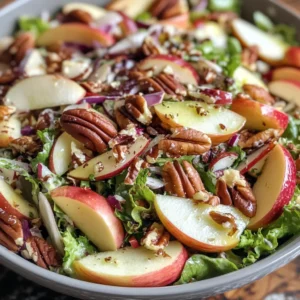 A refreshing and nutritious harvest salad featuring crisp apples and crunchy pecans, perfect for any season.