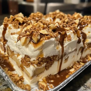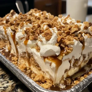 Toffee Crunch Icebox Dessert is a delightful and easy-to-make summer treat that combines layers of creamy filling, crunchy toffee bits, and a graham cracker crust.